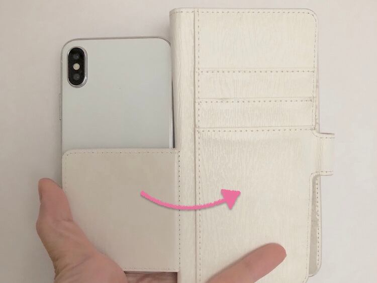 外寸16.2cm×7.9cm以下のスマホに装着可能な手帳型のスマホケースです。内側の吸着パッドに貼り付け、装着します。吸着パッドは繰り返し装着可能。手帳を開く様な形で、装着したままの写真撮影を可能です。(写真4枚目をご参考ください。)ストラップホルダー付。