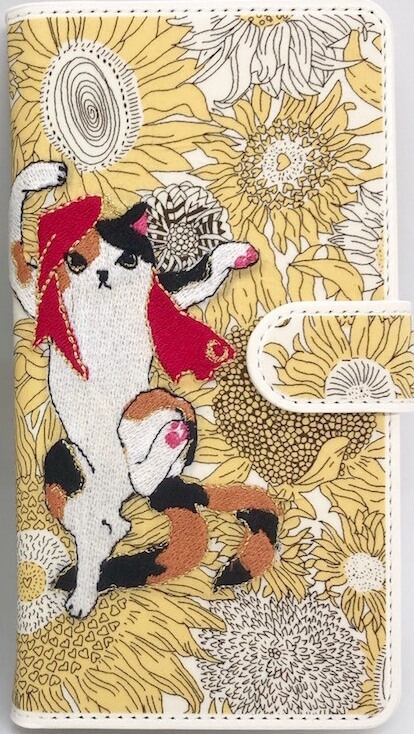 手帳型スマホケースはモチーフが横長のため、マグネットの留め具を避けての配置になります。