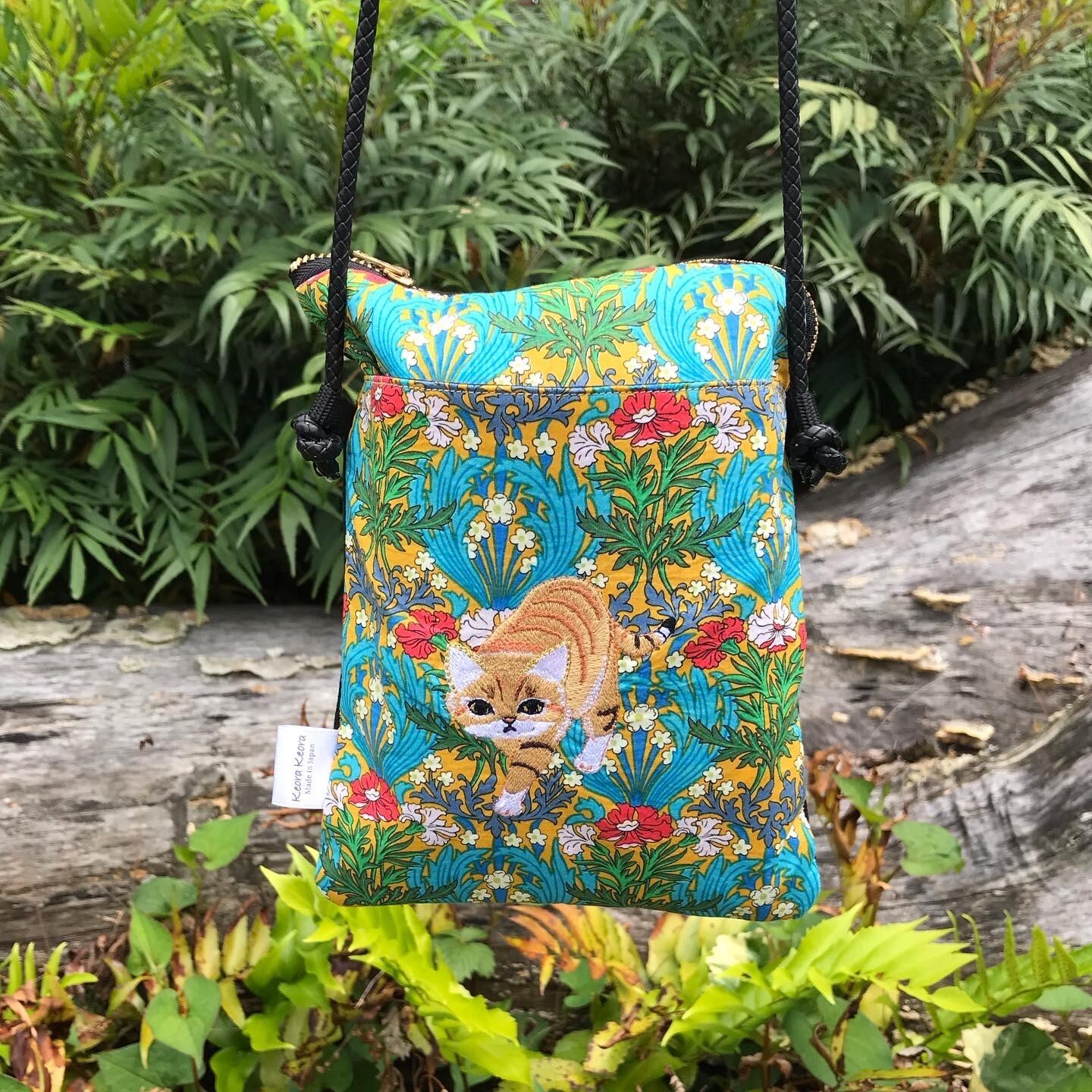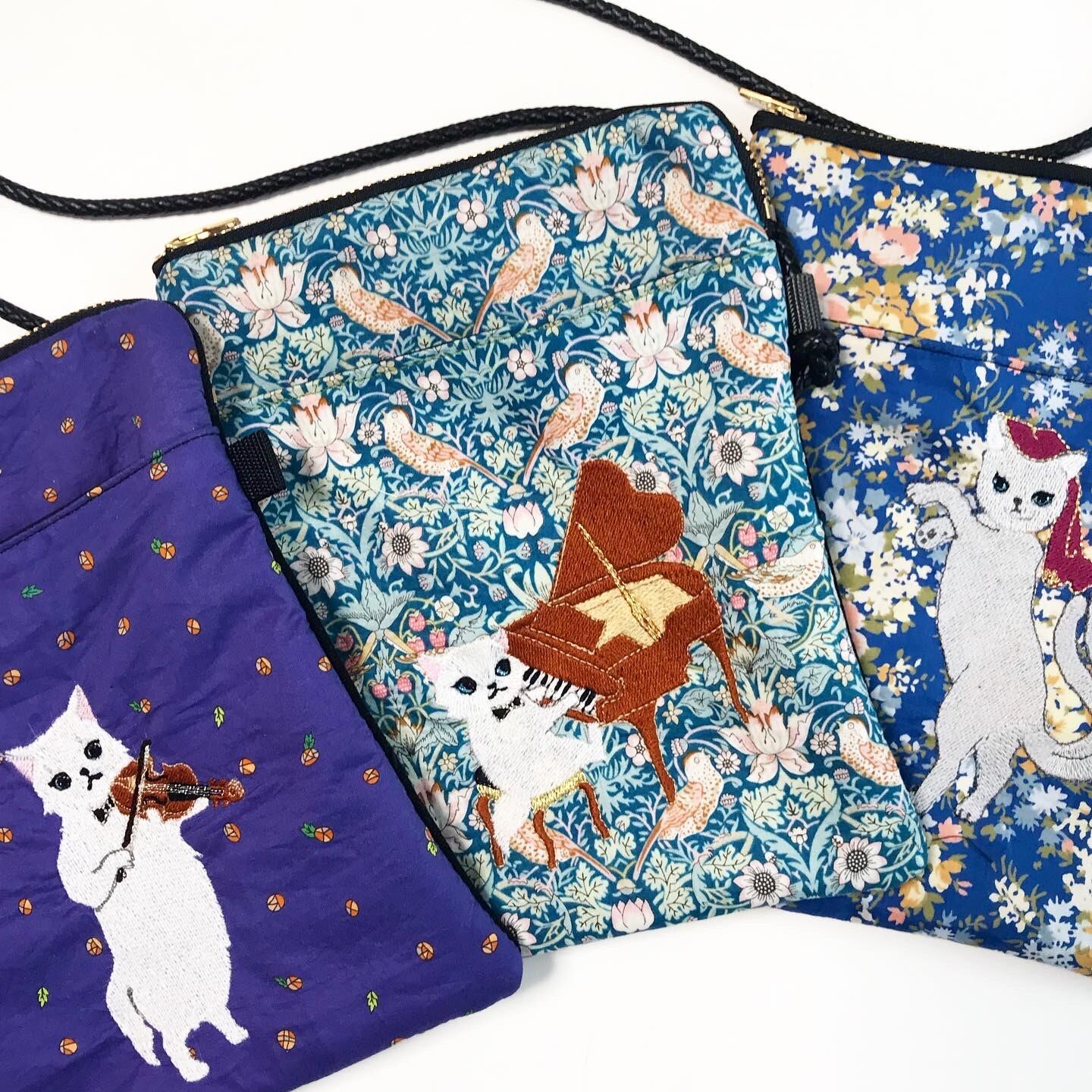 リバティ・ファブリック「タナローン」の心地よいの肌触りのポーチ、手帳スマホケースL、スマホポシェットのオーダーを承ります。刺繍を施した上品で個性豊かなデザインです。