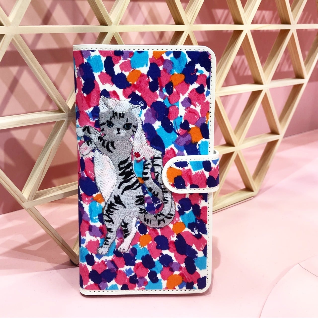 手帳型スマホケースはモチーフが横長のため、マグネットの留め具を避けての配置になります。