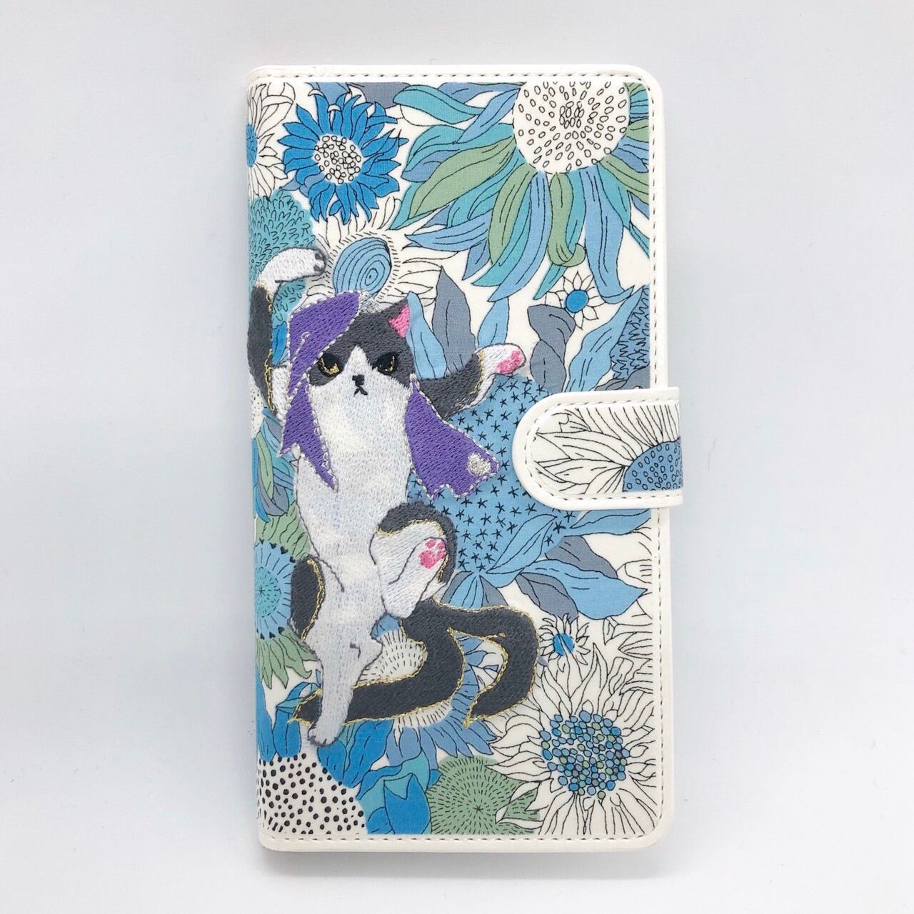 手帳型スマホケースはモチーフが横長のため、マグネットの留め具を避けての配置になります。