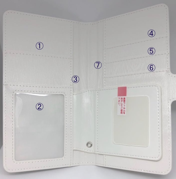 外寸16.2cm×7.9cm以下のスマホに装着可能な手帳型のスマホケースです。内側の吸着パッドに貼り付け、装着します。吸着パッドは繰り返し装着可能。手帳を開く様な形で、装着したままの写真撮影を可能です。(写真4枚目をご参考ください。)ストラップホルダー付。
