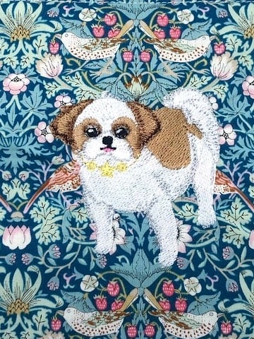 リバティ・ファブリック「タナローン」の心地よいの肌触りのポーチ、手帳スマホケースL、スマホポシェットのオーダーを承ります。刺繍を施した上品で個性豊かなデザインです。