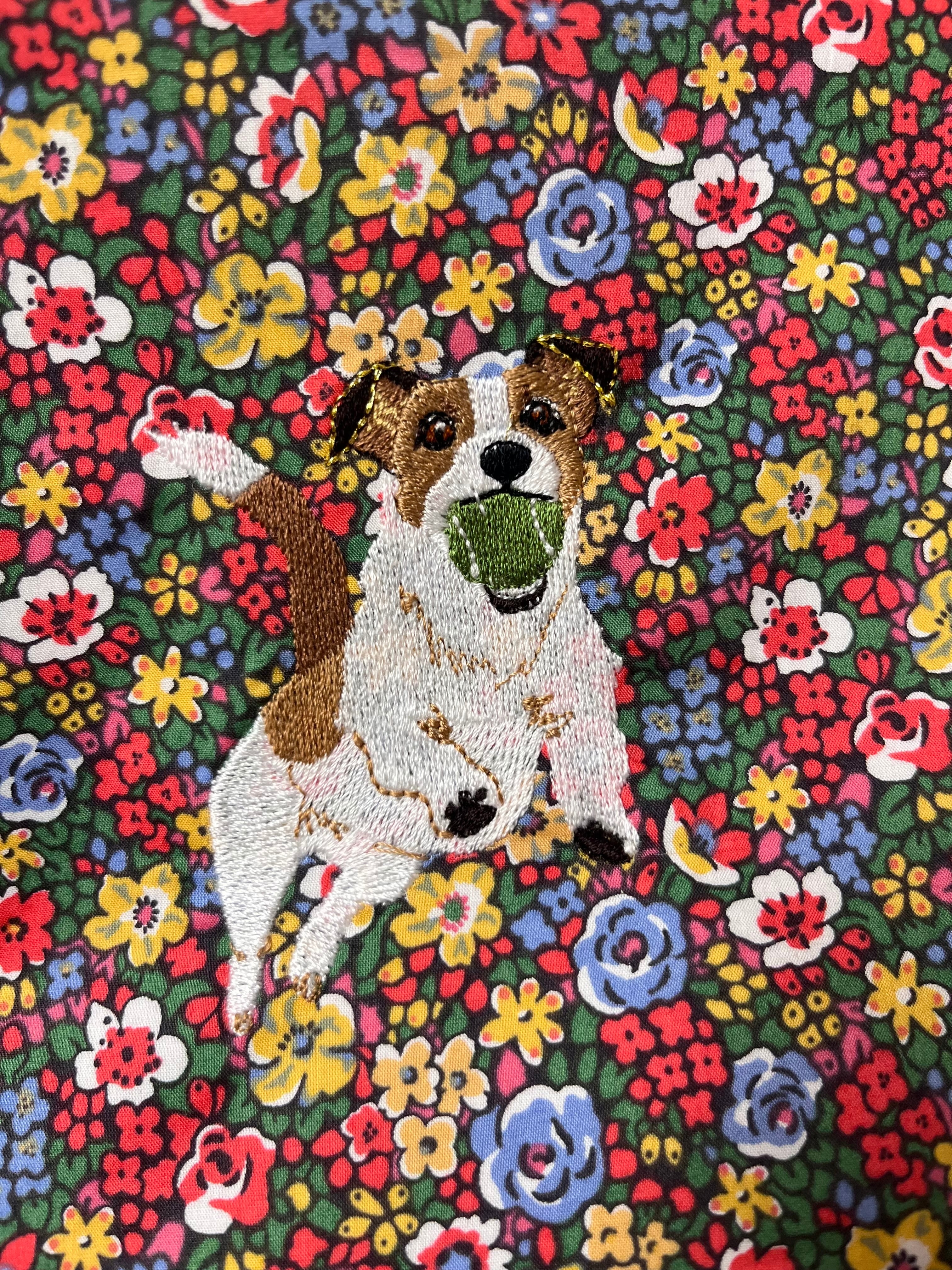 リバティ・ファブリック「タナローン」の心地よいの肌触りのポーチ、手帳スマホケースL、スマホポシェットのオーダーを承ります。刺繍を施した上品で個性豊かなデザインです。